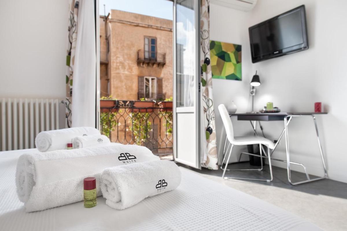 The White is on the second floor of an old building built in 1910 and located just a few metres from Palermo's central train station; it is practically opposite the terminus of the TRAM line 1 and about 100 metres from the terminus of the 'Prestia e Comandè' BUS that runs between the airport and Palermo Central Station. The White has all double rooms with en-suite bathroom; shower with chromotherapy, hairdryer, toilet and bidet. In the room there is a desk, a 32-inch LED television, a wardrobe, a safe, a minibar and a balcony. All rooms have independent heating and air conditioning.
